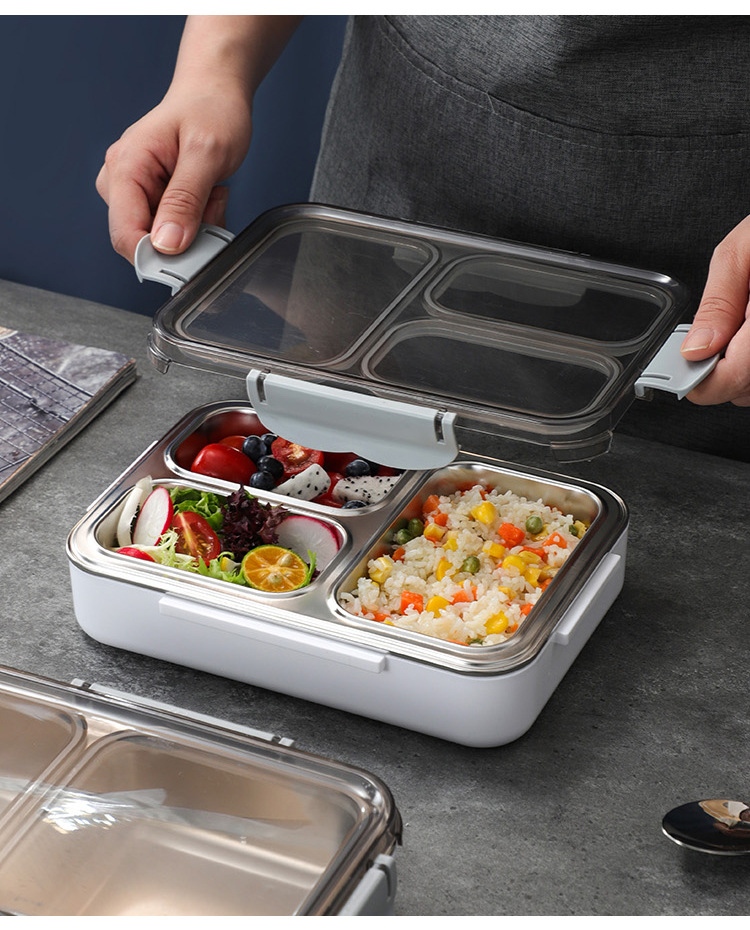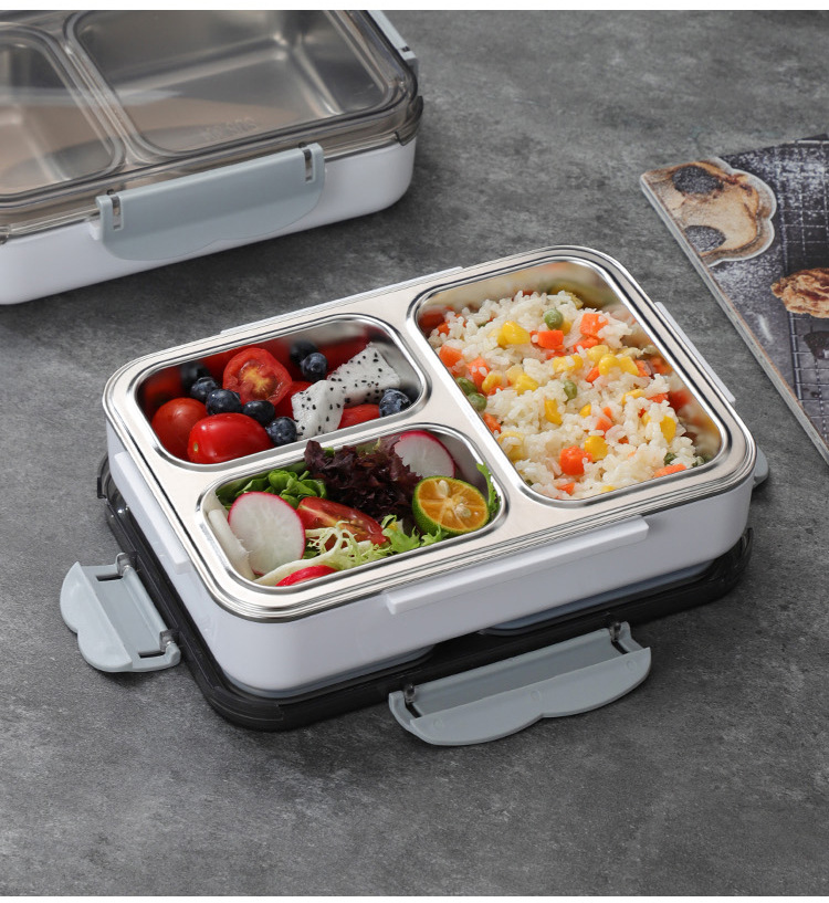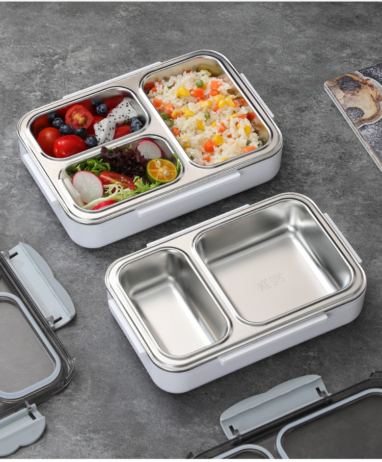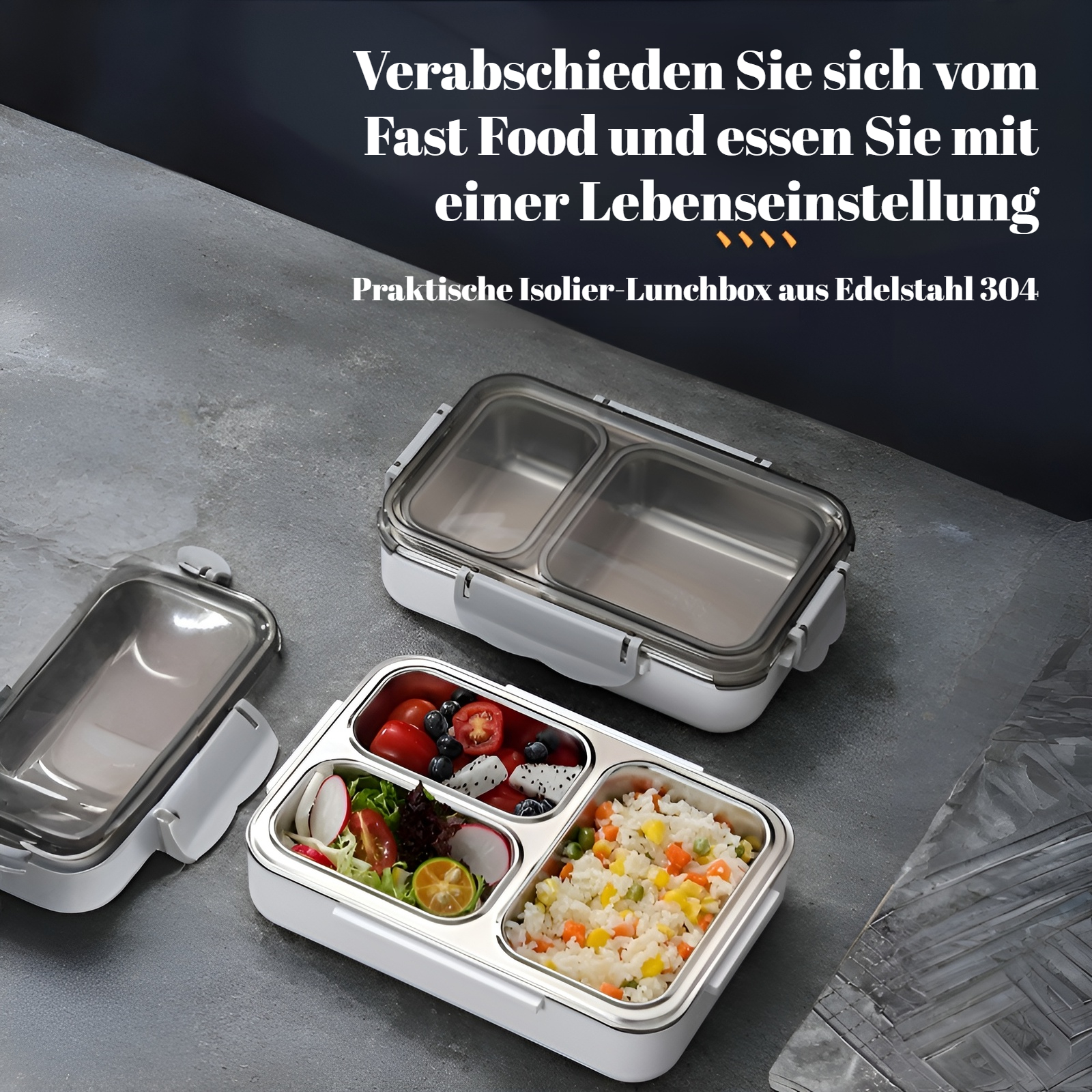 Lunchbox aus Edelstahl 304 mit Mittag- und Abendessenfach, geruchsneutrale Lunchbox, versiegelt, aus