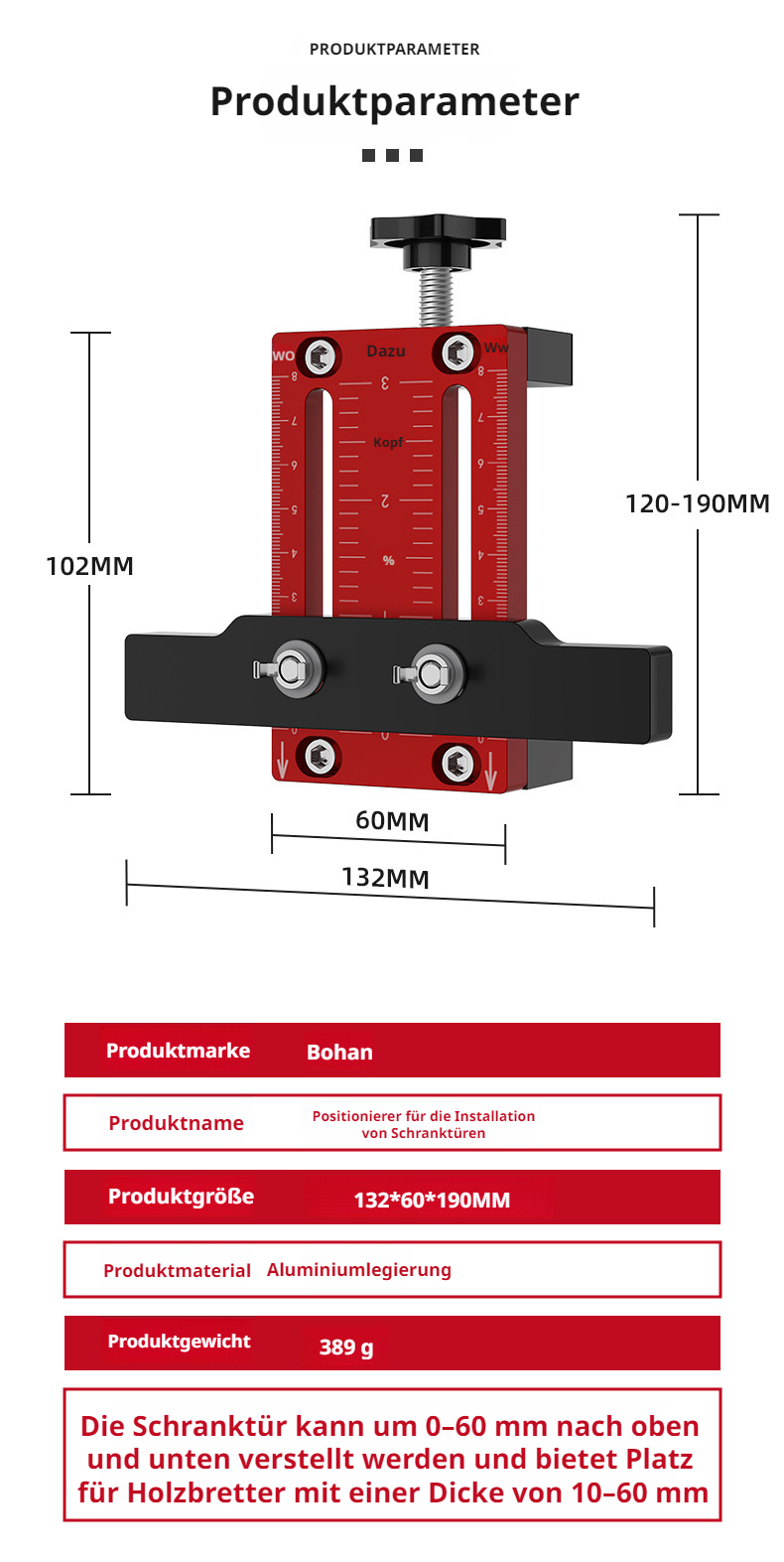 Präzisionsbohrwerkzeug SchranktürLocator aus Aluminiumlegierung Mess und Installationsbohrwerkzeug P